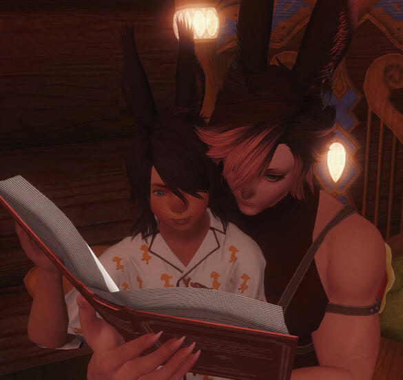 Raine - 2nd AU MateElias met Raine on a boat travelling to Old Sharlayan. Raine is a sailor boy and would always say hello to Elias -- they eventually got together and have 4 kits together.